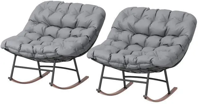 • Aosom Outdoor Rocking Chair Patio Set of 2, Oversized Rocking Papasan Chairs with Cushions for Garden Porch, 265 lbs., Gray