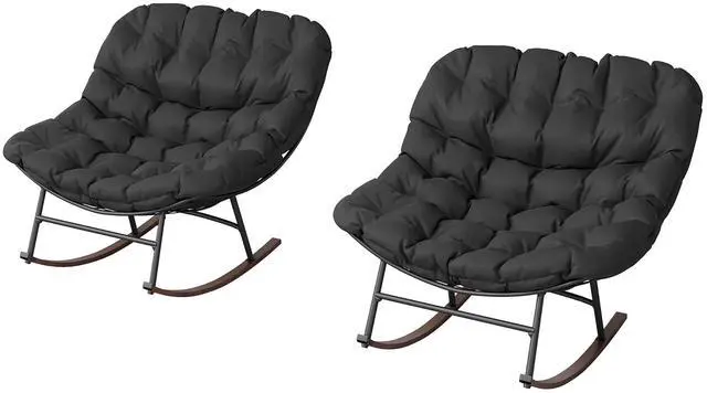 Relax in style with these Aosom outdoor rocking chairs. Combining ergonomic design with stain-resistant cushions on a strong, rust-resistant steel frame, these balcony chairs offer superior comfort and support. They feature a structure built to last in just about any outdoor garden, balcony, or porch setting. Additionally, the curved woodgrain finish bases add a modern touch to this versatile rocking chair set, helping them lend a serene vibe to any indoor or outdoor space they occupy.