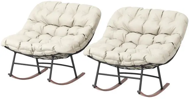 • Aosom Outdoor Rocking Chair Patio Set of 2, Oversized Rocking Papasan Chairs with Cushions for Garden Porch, 265 lbs., Beige