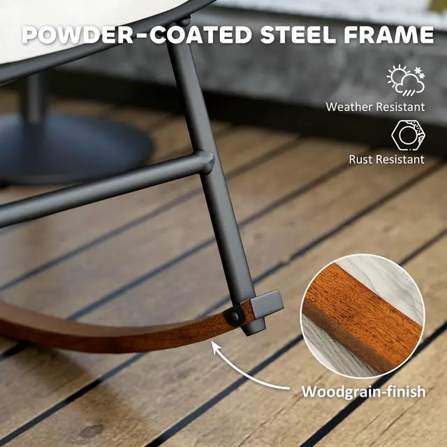 Relax in style with these Aosom outdoor rocking chairs. Combining ergonomic design with stain-resistant cushions on a strong, rust-resistant steel frame, these balcony chairs offer superior comfort and support. They feature a structure built to last in just about any outdoor garden, balcony, or porch setting. Additionally, the curved woodgrain finish bases add a modern touch to this versatile rocking chair set, helping them lend a serene vibe to any indoor or outdoor space they occupy.