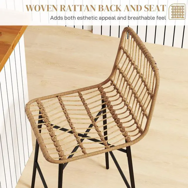 Revitalize your kitchen or home bar with our counter height stools from Aosom. Rattan seat and back paired with sleek steel legs blend natural charm and contemporary elegance. Seamlessly integrates into both modern and traditional decor, providing timeless appeal. Whether you're hosting guests or enjoying a quiet meal, our kitchen bar stools promise to enhance the look and feel of your surroundings. Enjoy cozy gatherings with our island chairs, creating memorable moments.