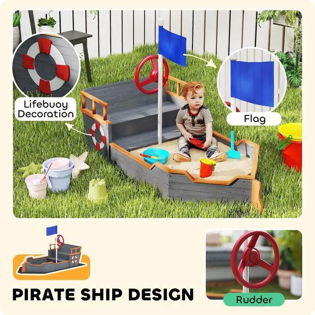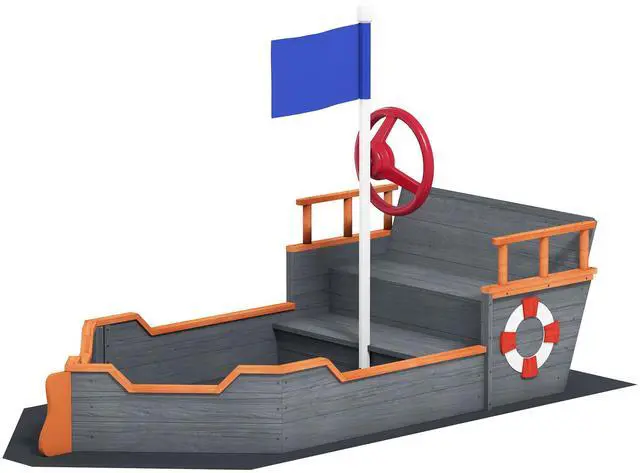 Ahoy mateys! Let your young sailor set sail on this playboat sandbox from Aosom! This sandbox has a ship design to let your child play captain and pretend to steer the ship with the wheel. The sandpit includes an upper level for seating with an armrest and a backrest. This sandpit for kids can help your child express their creativity and imagination as they sail off on adventures. The sandbox for kids has a large playing area to give your kids plenty of room to dig, build, and create!