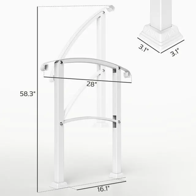 Aosom outdoor handrail is a versatile and flexible solution for improving safety and adding style to outdoor living. Adjustable angle from 0-45° suit 1 to 3 steps or even level surfaces. This stylish stair handrail features a powder-coated steel frame for smooth maintenance and an elegant curly side design for an attractive finishing touch. Enhance an extra layer of safety in your porch, deck, or patio for those with mobility challenges.