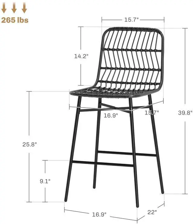 - - Woven rattan seat and back enhances aesthetics and ensures breathability