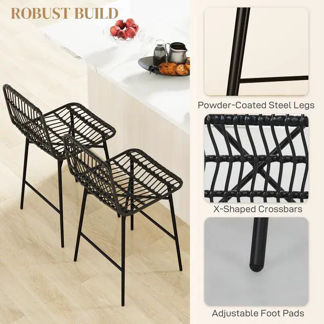 Revitalize your kitchen or home bar with our counter height stools from Aosom. Rattan seat and back paired with sleek steel legs blend natural charm and contemporary elegance. Seamlessly integrates into both modern and traditional decor, providing timeless appeal. Whether you're hosting guests or enjoying a quiet meal, our kitchen bar stools promise to enhance the look and feel of your surroundings. Enjoy cozy gatherings with our island chairs, creating memorable moments.