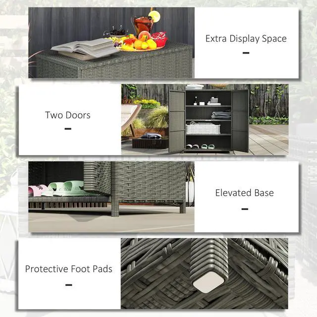Make your pool feel like a resort. Keep your outdoor accessories close by with Aosom's outdoor wicker storage cabinet. This pool valet has four shelves for storing clean towels, suntan lotion, squirt guns, goggles, or other garden essentials. PE wicker wrapped around a steel frame, the small outdoor storage cabinet is resistant to UV and weather. Get out, get organized, get Aosom.