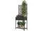 - - Storage shelf holds extra potted plants and gardening tools