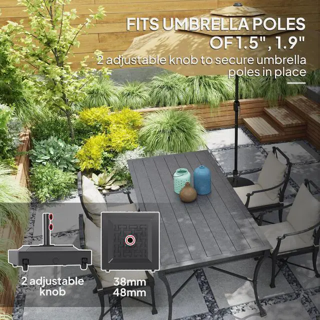 - - Parasol base weight suitable for garden parasols with a diameter under 13' and a pole size of 1.5" or 1.9"