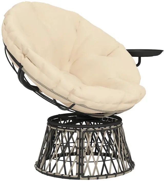 Bring all the comforts of an indoor papasan chair outside with the Aosom wicker patio swivel chair. The 360° swivel motion helps you find an optimal sitting position or get away from the sun's glare. This chair goes all out on comfort, meaning you can lay back into the overstuffed cushion and enjoy full relaxation with a built-in side tray table. Designed with weather-resistant materials, this wicker swivel chair is made with outdoor relaxation in mind. Get out, get comfy, get Aosom.