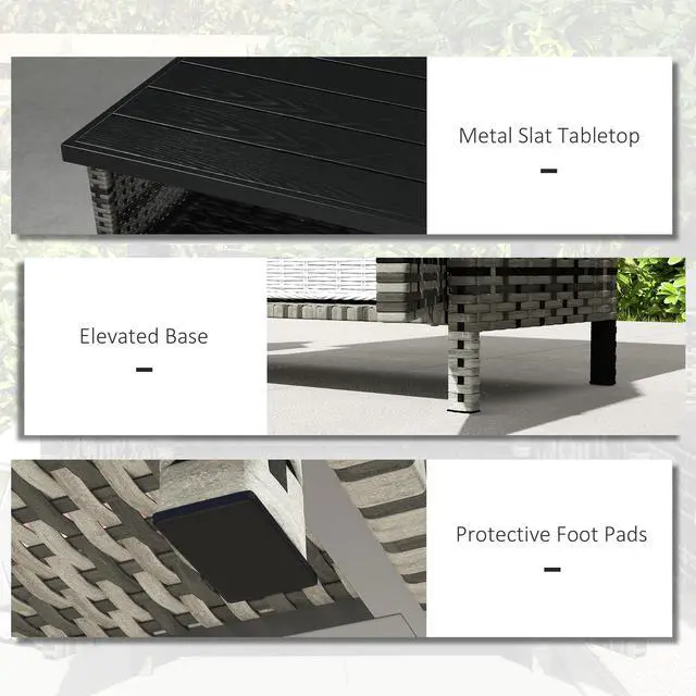 - - Powder-coated steel frame wrapped in PE wicker for outdoor use