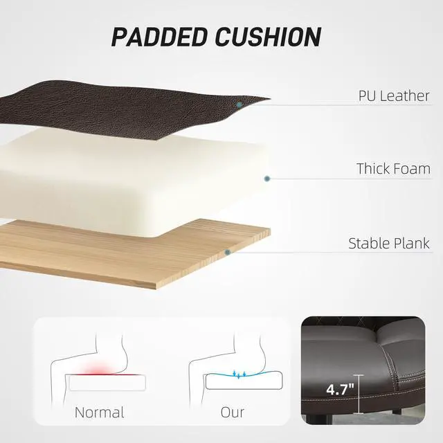 - - Thick padded cushions are wrapped with soft PU leather to enhance comfort
