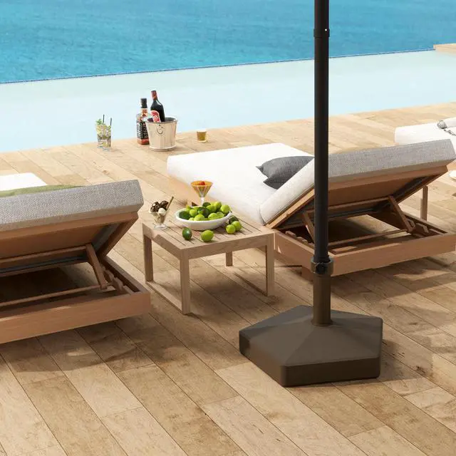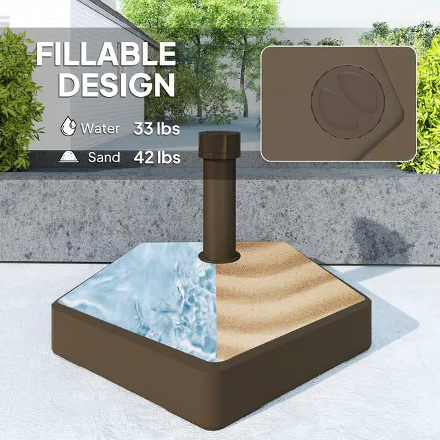 Ensure your parasol is firmly in place with the Aosom fillable umbrella base. Made from strong anti-aging HDPE plastic, it must be filled with sand or water to increase the total weight, keeping stability outdoors. Easy to set up with the screwed pole design. Combine our weighted umbrella base with a patio umbrella and create your oasis under the shade.