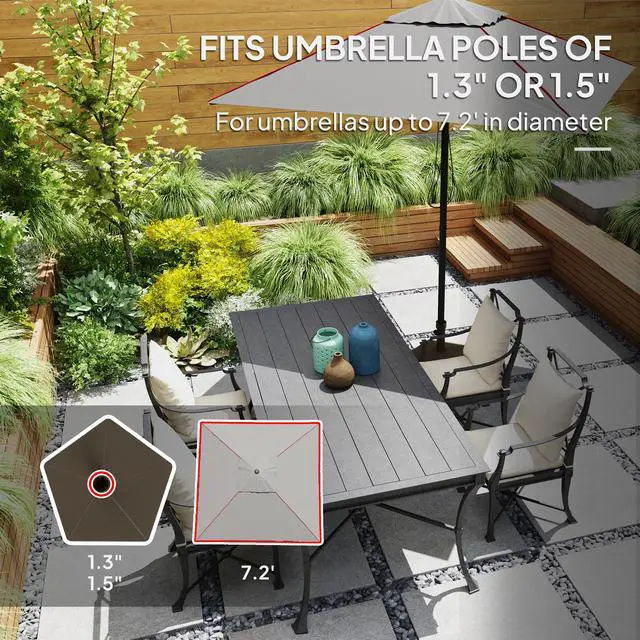 - - Parasol base weight suitable for garden parasols with a diameter under 7.2' and a pole size of 1.3" or 1.5"