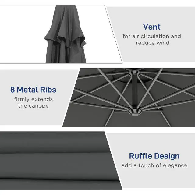 Sunny days are great, but sometimes you just need a little shade. Relax outside, on any type of day, with a cantilever patio umbrella from Aosom. It's never too early to start planning your own personal summertime oasis. Aosom is the leader in making your patio and backyard more comfortable and inviting. Look to us for all your outdoor furnishing needs all year round, no matter the weather.