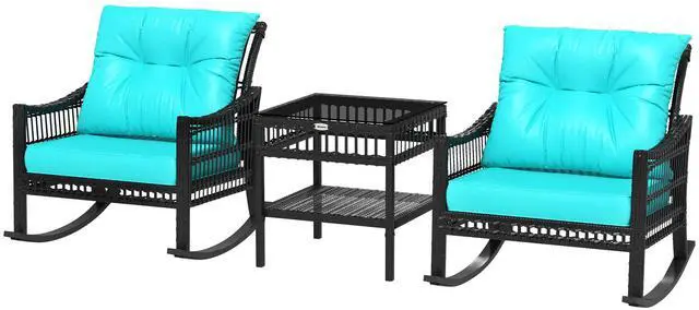 - - Three pieces wicker patio set includes two rocker chairs, and a matching coffee table with bottom storage for stylish outdoor living