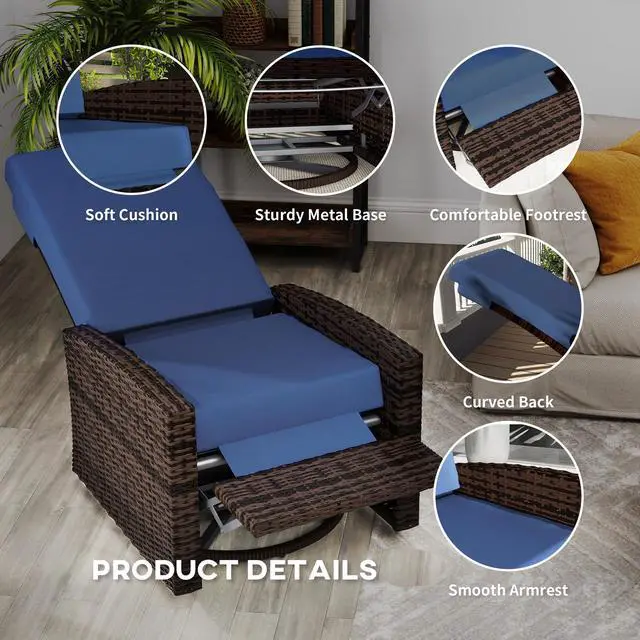 Bring all the comforts of an indoor chair outside. Placed on the patio, porch, by the pool, backyard, this wicker swivel chair goes all out on comfort. This chair features a reclining backrest and lifting footrest, you can lay back into its soft foam cushions. The chair can swivel a full 360°, so you can rotate to your optimal tanning spot or get away from the sun's glare. Made of weather-resistant materials, this swivelling chair was made outdoor in mind. Get out, get comfy, get Aosom.