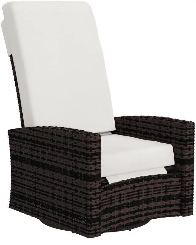 • Aosom Outdoor Wicker Swivel Recliner Chair, Lifting Footrest, 360° Rotating Basic, Water-resistant Cushions, Khaki