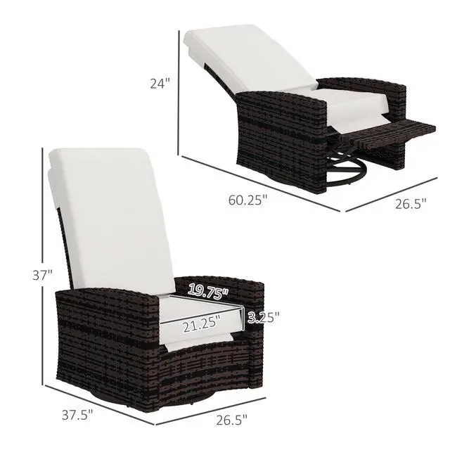 Bring all the comforts of an indoor chair outside. Placed on the patio, porch, by the pool, backyard, this wicker swivel chair goes all out on comfort. This chair features a reclining backrest and lifting footrest, you can lay back into its soft foam cushions. The chair can swivel a full 360°, so you can rotate to your optimal tanning spot or get away from the sun's glare. Made of weather-resistant materials, this swivelling chair was made outdoor in mind. Get out, get comfy, get Aosom.