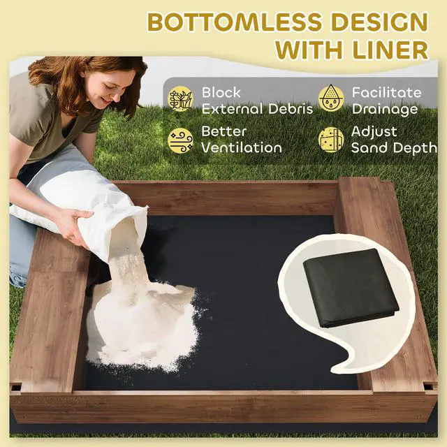 - - Bottom liner prevents sand spillage and blocks weeds and moisture