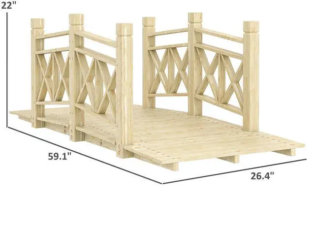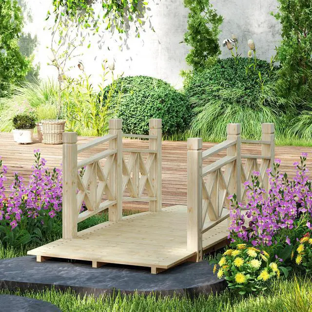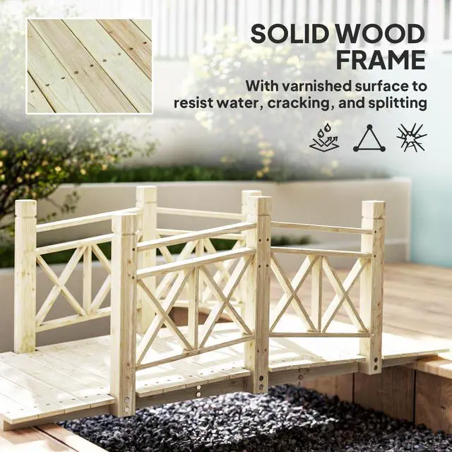 Add charming rustic decor to your backyard stream, creek, fish pond, or garden walkway with Aosom's wooden garden bridge. Sealed with varnish to withstand moisture, this novel landscaping accessory pairs excellently with any suitably sized backyard body of water. Feel free to safely walk the path over water by holding the two handrails to keep you steady as you traverse your backyard bridge. Get the most out of your water garden with this Aosom outdoor footbridge.