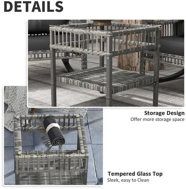- - Material: Galvanize Steel, PE Rattan, Tempered Glass, Polyester