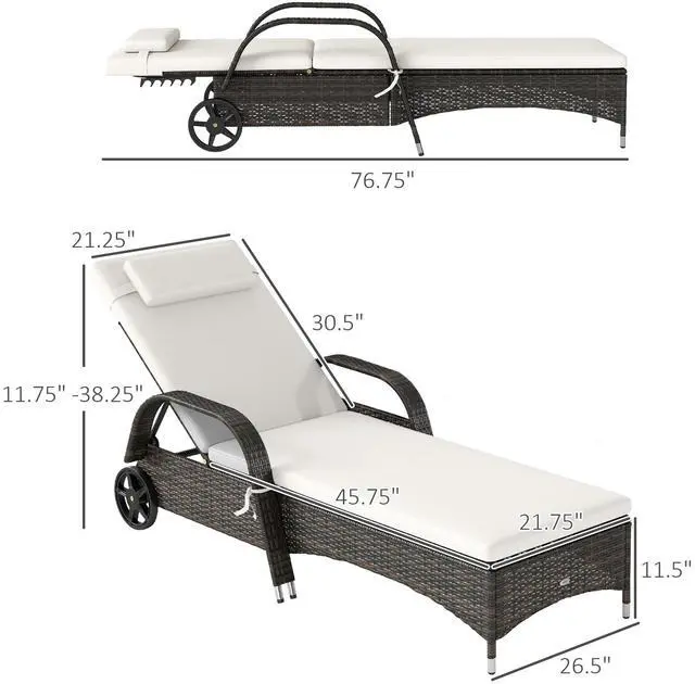 - - Lounge Dimensions: 76.8" L x 26.4" W x 38.2" H (fully flat size)