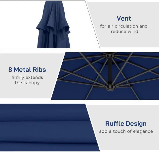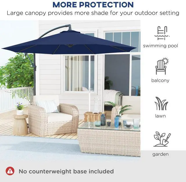 Sunny days are great, but sometimes you just need a little shade. Relax outside, on any type of day, with a cantilever patio umbrella from Aosom. It's never too early to start planning your own personal summertime oasis. Aosom is the leader in making your patio and backyard more comfortable and inviting. Look to us for all your outdoor furnishing needs all year round, no matter the weather.