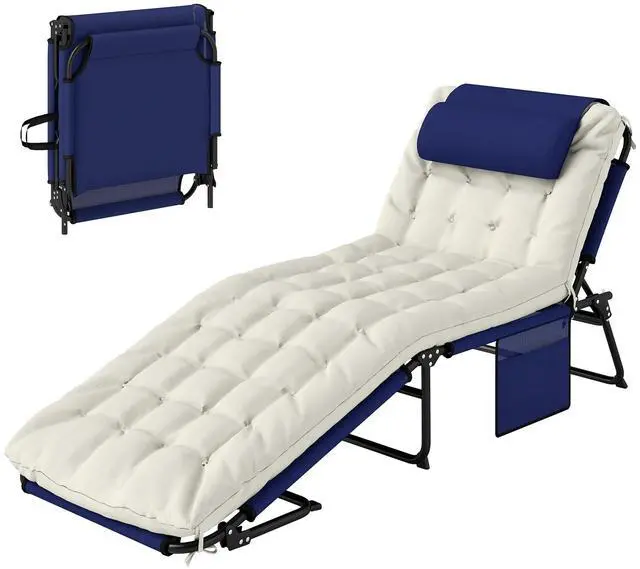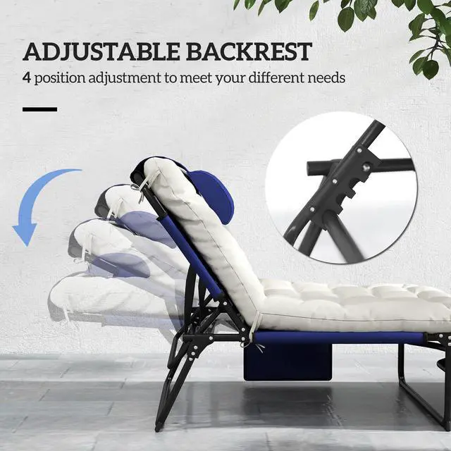 Wish you could pack up the comfort of the resort and bring it on the road? You're a step closer. Aosom has a foldable sun chair so you can lay back at the beach, camp, or the pool. It features a reclining backrest with 4 positions, letting you sit, lie, or recline. A pillow pads your head, and a large cushion makes the entire surface plush and soft. What's more comfortable than peace of mind? A pocket on the side ensures your important belongings have a place so you can nap in peace.