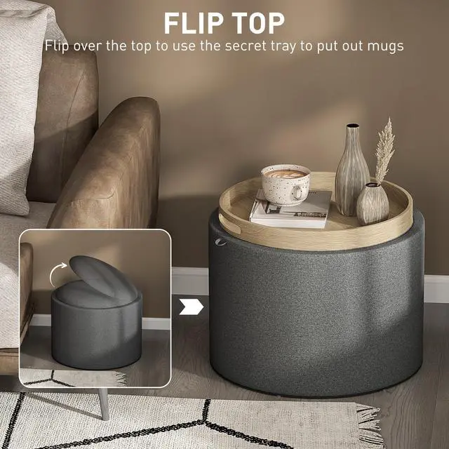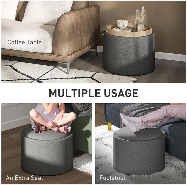 If you need extra storage but want to add an accent piece to your home, this Aosom ottoman with storage for the living room will be a great fit. Its modern design with linen fabric upholstery can match your style while giving guests extra space to sit or put their feet up. It's an ottoman coffee table with the lid down, and it features a removable top that reveals hidden storage space. Make your house feel like a home with Aosom.