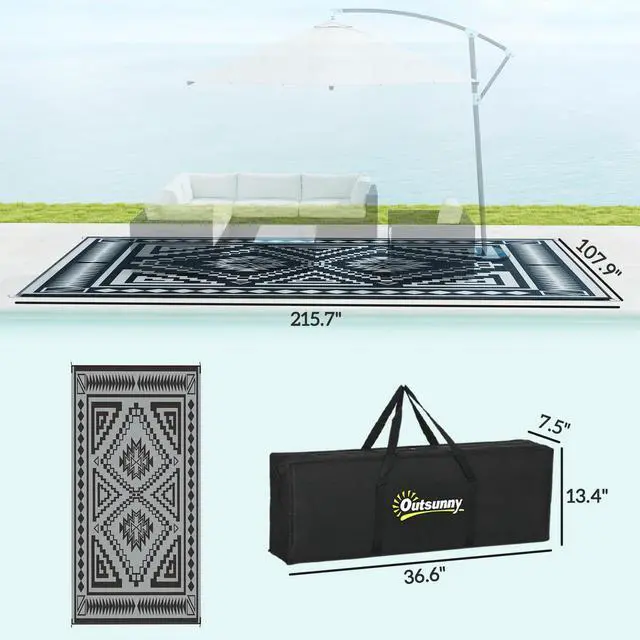 Camp on a carpet with Aosom. This porch rug is designed to handle dirt. Outdoor-ready, our rug really cleans up fast; sweep, spray, wipe, or wave it; its powerful polypropylene fibers stay dry and don't saturate. Keep an outdoor rug in the camper, RV, or car; it's excellent for camping, beach trips, patio picnics, or anywhere outside. The color is reversible, meaning you can flip our plastic rug over for a fresh side or style. Upholster the outdoors with Aosom.