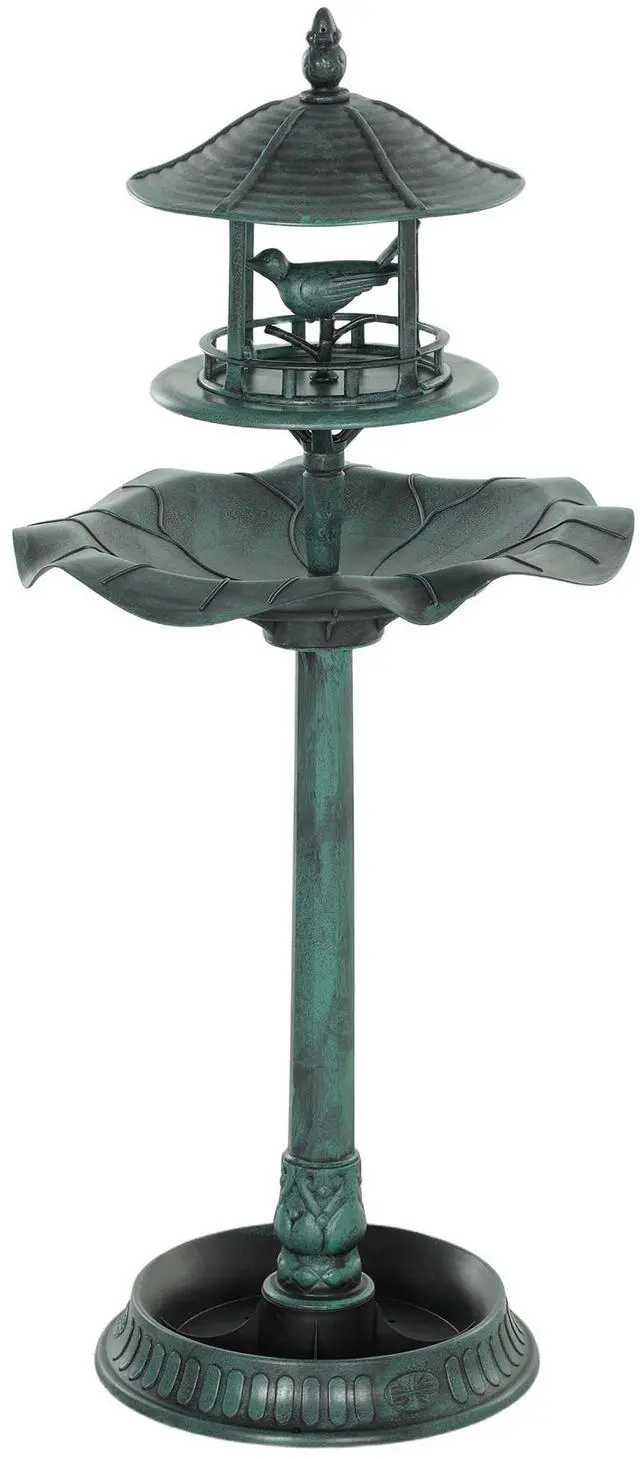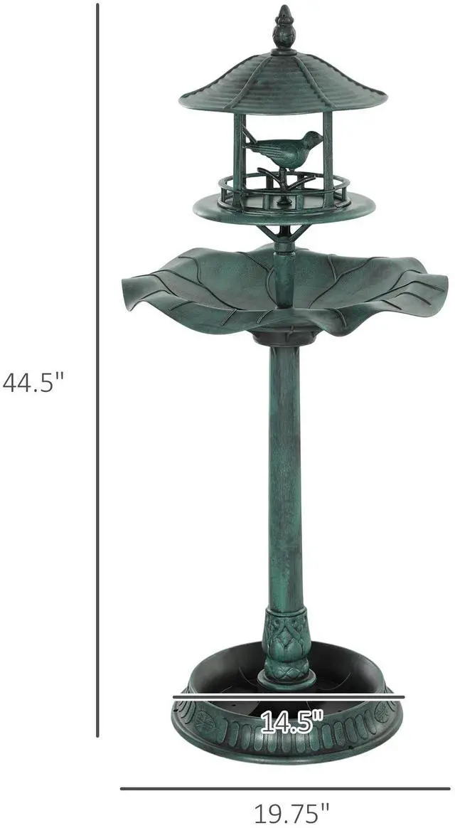 Add a sense of natural calmness to your outdoor decor. This deck bird bath offers a quick cool down for passing birds. The 3.75" deep bird bath bowl is embellished with special leaf shapes, suitable for smaller birds to bathe. A planter below the pedestal column provides a place to set colorful flowers. A feeder is also included with this free-standing bird feeder so that you can add food for birds. This bird feeder with stand will surely become the most inviting part of your backyard.