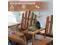 - - Wagon wheel-shaped legs provide a rustic, old-timey look