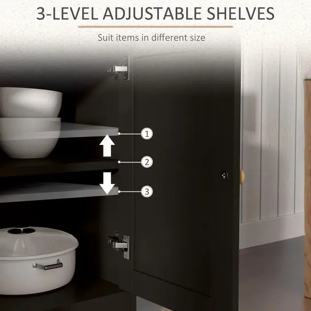 Quickly add that needed storage and get yourself clutter-free with this Aosom credenza kitchen cabinet. A neutral tone makes this dining room cabinet a low-key statement to your house. At the same time, the double-door cupboards and two drawers provide ample storage space for your daily accessories and utensils. Customize your home space with the adjustable shelves that move to fit your needs. Make your house a home with Aosom.
