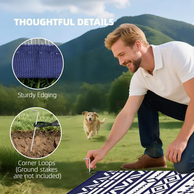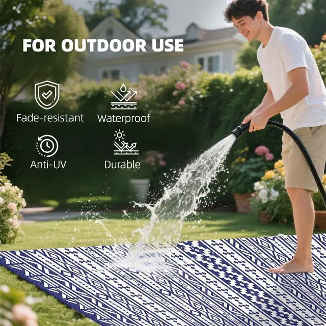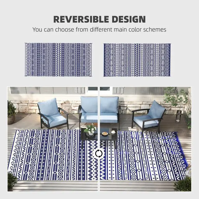 Camp on a carpet with Aosom. This porch rug is designed to handle dirt. Outdoor-ready, our rug really cleans up fast; sweep, spray, wipe, or wave it; its powerful polypropylene fibers stay dry and don't saturate. Keep an outdoor rug in the camper, RV, or car; it's excellent for camping, beach trips, patio picnics, or anywhere outside. The color is reversible, meaning you can flip our plastic rug over for a fresh side or style. Upholster the outdoors with Aosom.
