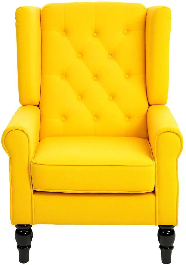 Bring style and character to your living space with this Tufted Accent Chair from Aosom. This chair wonderfully complements any decor with elegantly tufted cushions, wood legs, and a fully padded seat. Soft snow flannel fabric encases thick padded cushions to give you hours of comfortable, stylish sitting, while colorful upholstery give this chair a stunning, unique appearance that is sure to stand out in all the right ways. Have fun with your space with our fashionable accent chair.