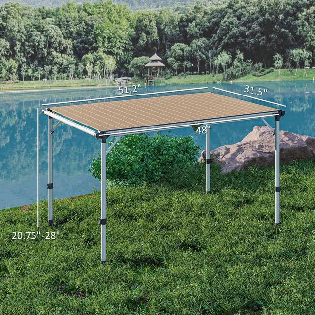 Discover the versatility of the Aosom outdoor folding table, your go-to choice for any outdoor occasion. With an adjustable height from 20.9" to 28", this folding camp table can easily accommodate uneven terrain. Crafted from anodized and painted aluminum, it resists rust and corrosion, helping it last for a long time. At a lightweight 18 lbs., it's the preferred portable table for dining, games, or for use as a handy workstation.