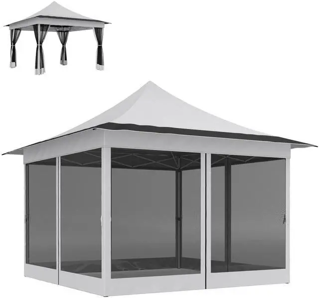 Transform any outdoor space into a serene oasis with the Aosom pop-up canopy! The simple setup of this easy up canopy makes it a great patio canopy. The four mesh netting screens promote airflow and keep critters out, while the UPF50+ top offers excellent sun protection. Adjust the height to suit your needs and enjoy the great outdoors in shaded comfort!