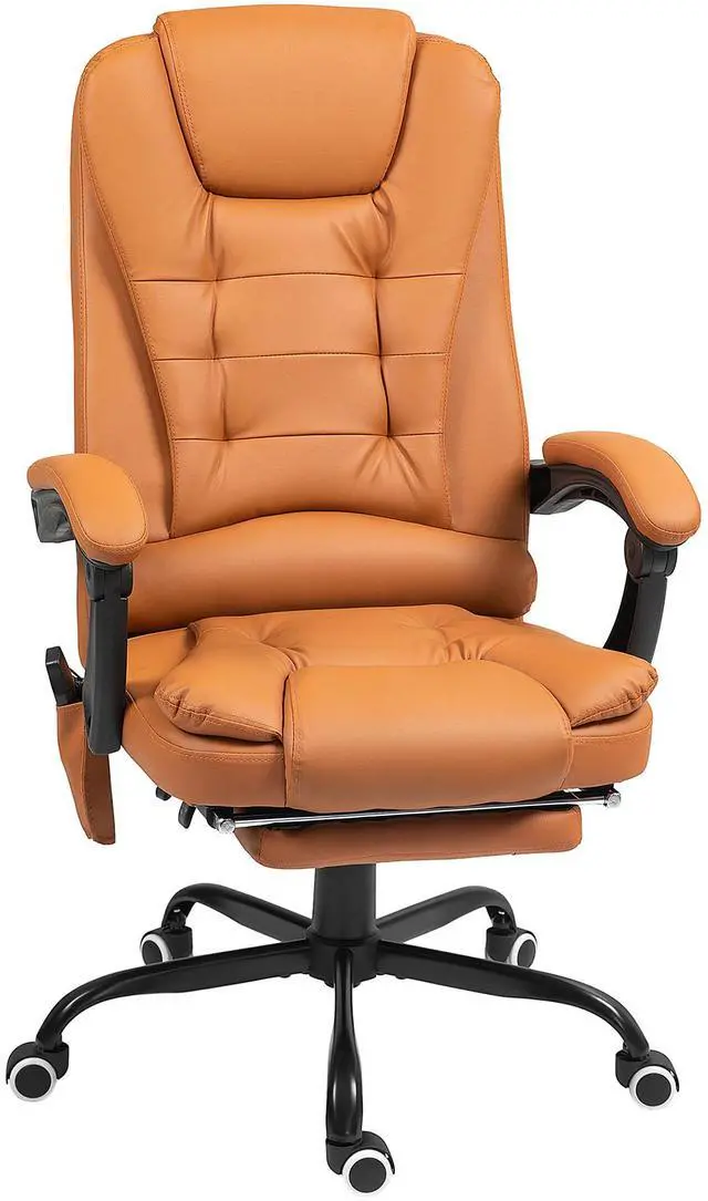 Sit back, relax, and let Aosom's computer desk chair do the rest. This office chair offers seven vibration nodes along the back and seat to relieve back pain during the day. The adjustable height, recline angle, and retractable footrest make your sitting comfortable as needed. Back support and padded armrests, seats, and headrests offer relaxation for long work days. Get the most out of your productivity while vibrating back pain away with this home office chair from Aosom.