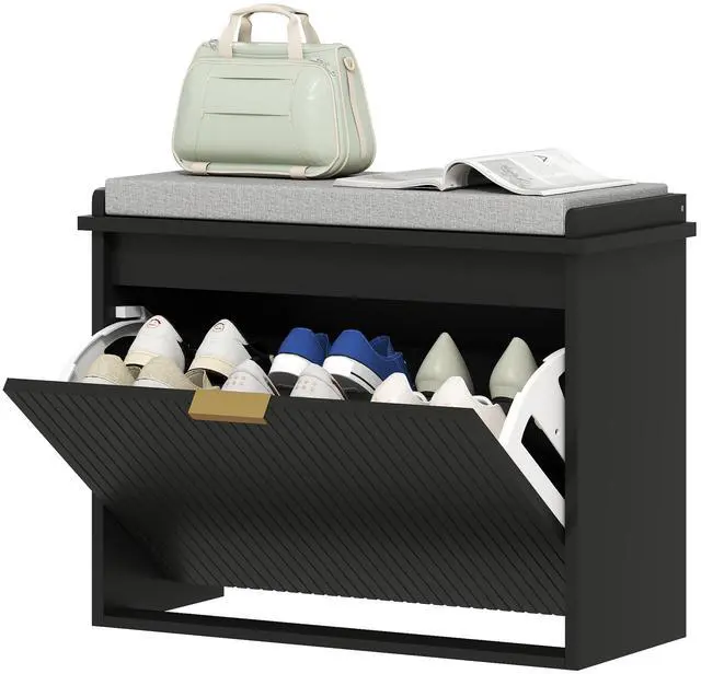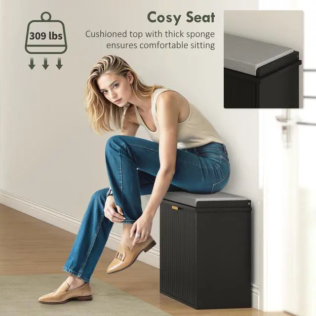 Upgrade your entryway with the Aosom shoe bench, designed for durability with a 265 lb weight capacity. The soft cushion with a linen-feel cover offers comfort while you slip on your shoes. A flip drawer for convenient footwear storage keeps your space organized and stylish. It is suitable for your entryway and works as a cozy window bench or a sleek foot-of-bed storage solution. Functional, chic, and comfyâgreat for any space!