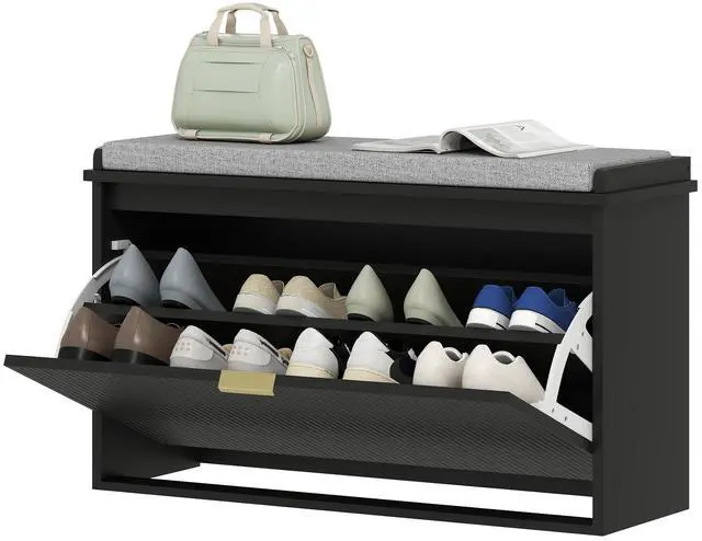 Upgrade your entryway with the Aosom shoe bench, designed for durability with a 265 lb weight capacity. The soft cushion with a linen-feel cover offers comfort while you slip on your shoes. A flip drawer for convenient footwear storage keeps your space organized and stylish. It is suitable for your entryway and works as a cozy window bench or a sleek foot-of-bed storage solution. Functional, chic, and comfyâgreat for any space!