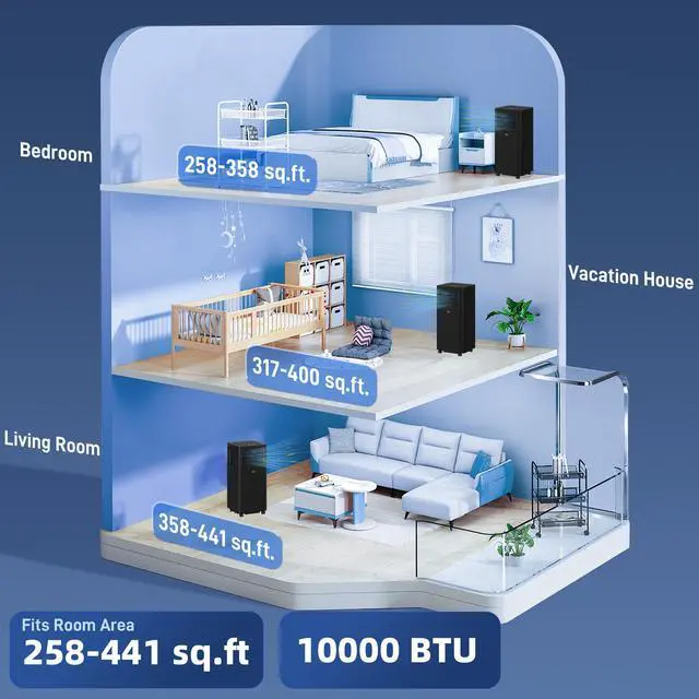 Stay cool and comfortable with the Aosom Portable Air Conditioner. This 3-in-1 marvel not only cools your space (16-30â) but also dehumidifies, fans, and ensures peaceful sleep with its quiet mode. Great for areas up to 441 sq ft, it's your go-to for efficient air conditioning. Enjoy the ease of LED touch controls, a remote, and a portable AC unit design that moves easily to where you need it most.