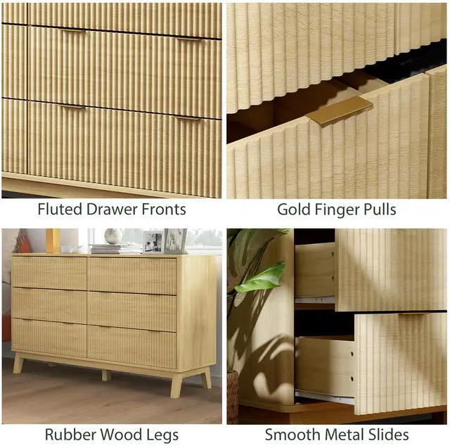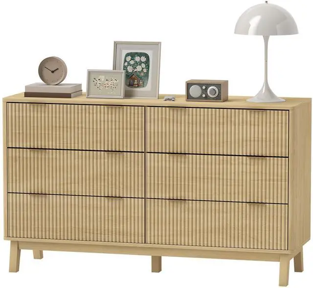 Discover the chic charm of this 6-drawer dresser from Aosom, where style meets functionality. Its wave-like fluted panel and finger edge pull handles offer a modern twist to traditional bedroom furniture, complemented by angled legs for a unique esthetic. Not just a pretty face, this chest of drawers features six spacious drawers to let you organize everything from clothes to jewelry, all while enhancing your home decor in the bedroom, living room, or hallway.