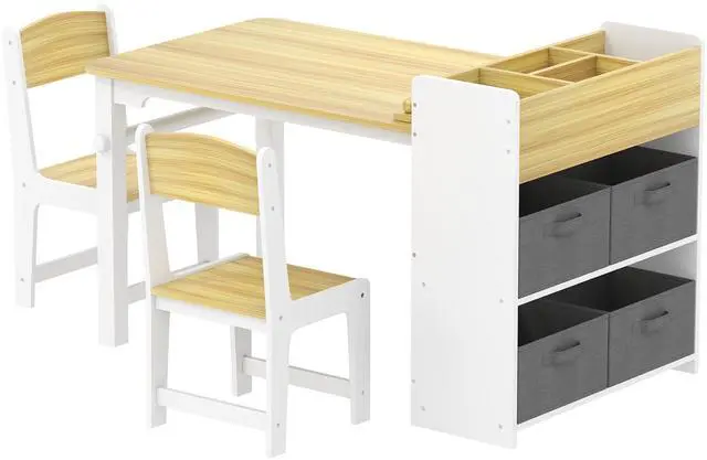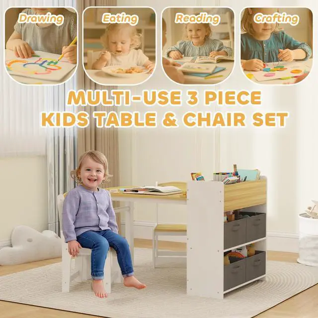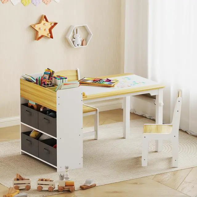Spark your child's creativity with the Qaba kids' table and chair set. This special spot for reading, drawing, and play is designed with expanding creative fun for little artists in mind and features a built-in paper roll for smart storage. The table and two chairs are crafted with smooth, rounded edges and child-friendly materials for safety and comfort. Whether it's for learning, crafting, or playtime, this toddler activity table and chair set is an excellent addition to any kid's room!