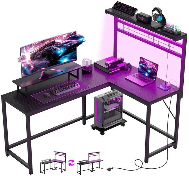 Discover your optimal gaming and work setup with the Aosom L-shaped gaming desk! Enjoy customizable LED lighting to create your preferred atmosphere, with built-in AC outlets and USB ports to power your devices. This versatile design effortlessly converts from a space-saving corner desk to a spacious long desk workstation, allowing for a highly flexible dual-monitor setup in either configuration for enhanced play or productivity.