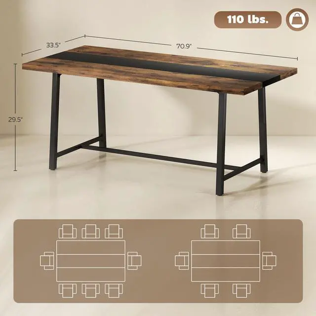 - - 70.9" x 33.5" long tabletop accommodates up to eight people comfortably