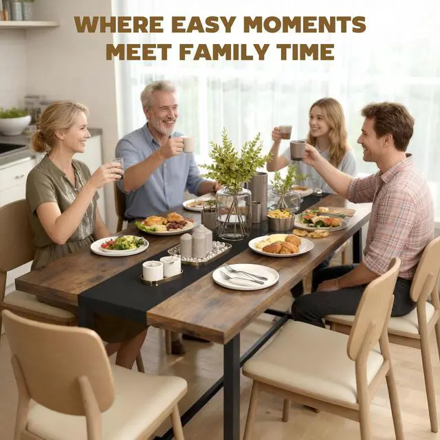 Gather around this large kitchen table from Aosom, where style meets function. With its spacious design, this rectangular dining table comfortably seats up to eight people, making it great for family meals, holiday feasts, or casual dinner parties. With a tabletop crafted from thick MDF and a powder-coated steel frame, this Aosom dining room table offers a solid surface you can rely on, while the chic industrial design adds a sleek, retro flair to your dining space.