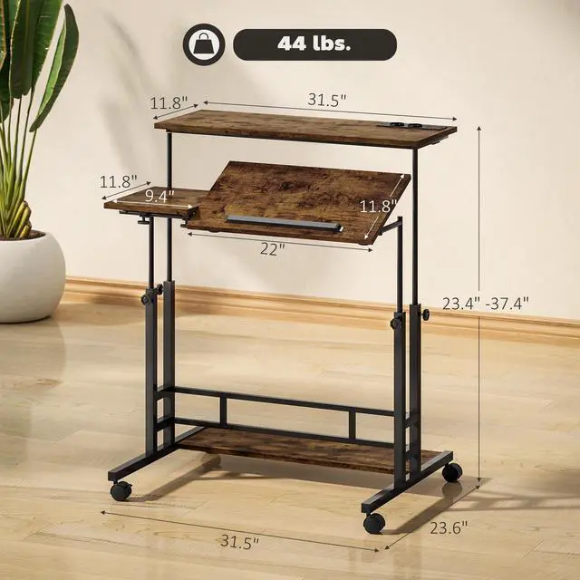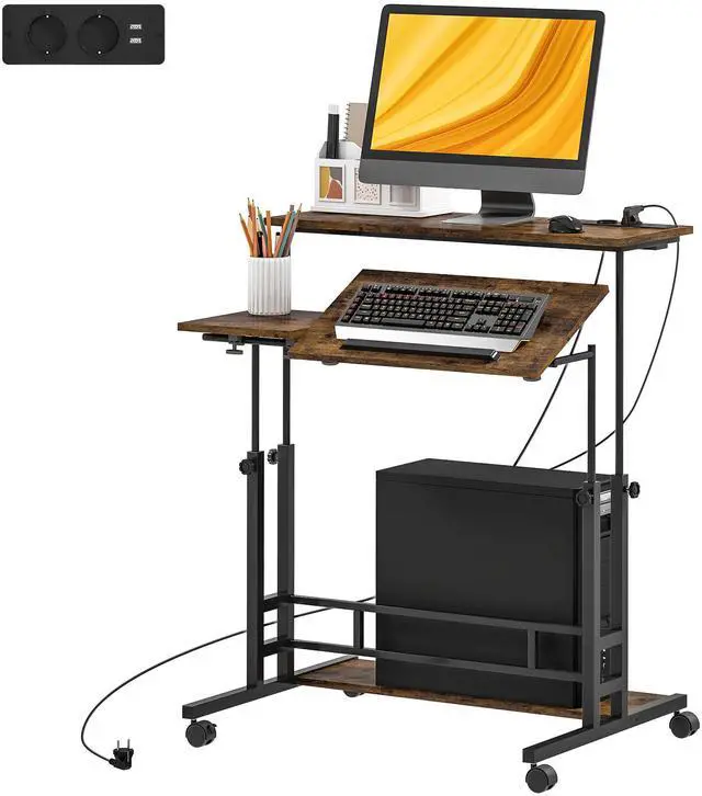 Take your workflow to the next level with the Aosom adjustable standing desk. Designed for comfort and flexibility, it features three desktops, including a tiltable center panel. It adjusts from 23.4" to 37.4", letting you easily customize the height for maximum comfort and productivity. With built-in power, smooth-rolling wheels, and a robust modern build, it's a must-have for work, school, or creative projects.