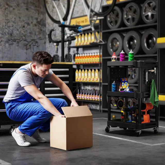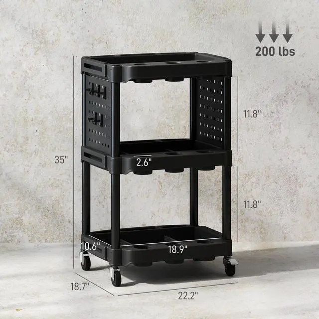 Transform your workspace with the Aosom utility cart. Glide effortlessly with four universal wheels, two of which can be securely locked in place with brakes while working. Maximize your organization with three-tier shelves, side-hole shelves, and ten hooks. Suitable for garages, workshops, and warehouses, this rolling tool cart keeps tools tidy and accessible, making every project a smoother, more well-organized experience.