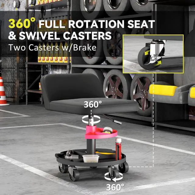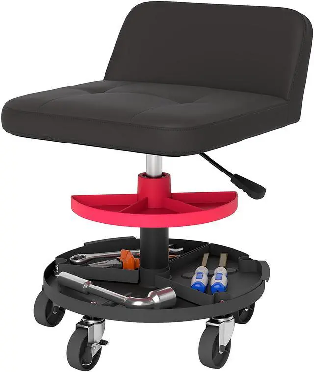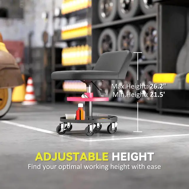 Make the most of your garage workspace with the Aosom mechanic rolling stool. Crafted from heavy-duty steel, this work stool supports up to 300 lbs. and features pneumatic height adjustment for customized comfort. The ergonomic design reduces fatigue during long tasks, while casters with smooth 360° motion provide effortless movement around your workspace. A must-have for mechanics who demand durability and mobility.
