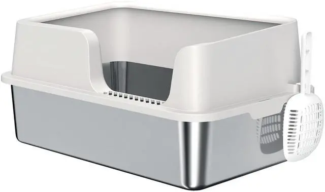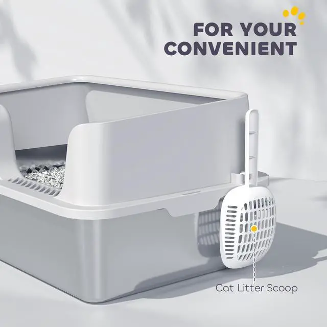Keep your home tidy and odor-free with the Aosom extra large cat litter box. Its 5.1" high sides prevent litter spills, while the large cat litter box resists odors and stains for easy upkeep. Suitable for larger felines, this cat toilet includes a sand drop area to catch litter from your cat's paws and a scoop for convenient cleaning.